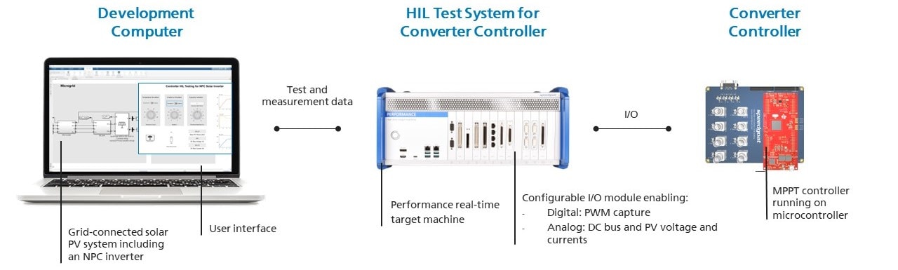 Set up a HIL test system to test the maximum power point tracking (MPPT) algorithm on the embedded controller.