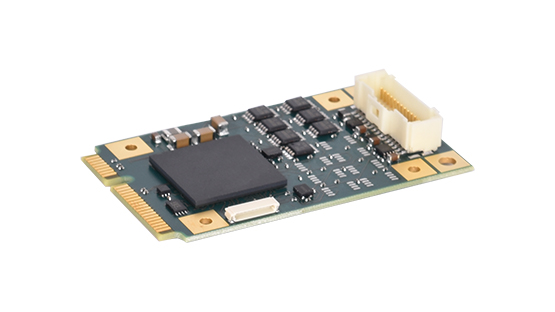 The IO393 I/O module is a mPCIe-compatible, configurable I/O module with 50k logic cells, 14 ESD-protected TTL I/O lines, 6 differential, ESD-protected RS422/RS485 I/O lines and a AMD® Artix®-7 chip. All the I/O lines are individually programmable as input or output.