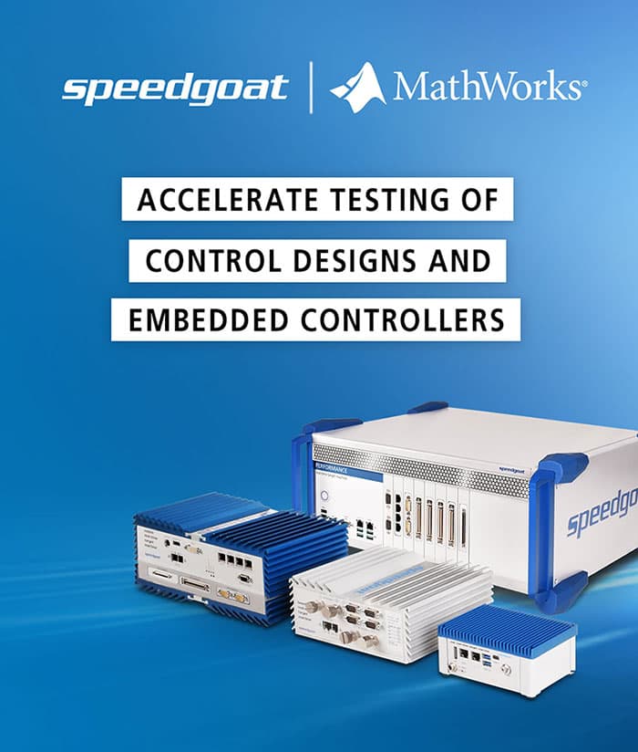 Speedgoat test systems are ideal for rapidly and continuously prototyping control designs and thoroughly testing embedded controllers with digital twins.
